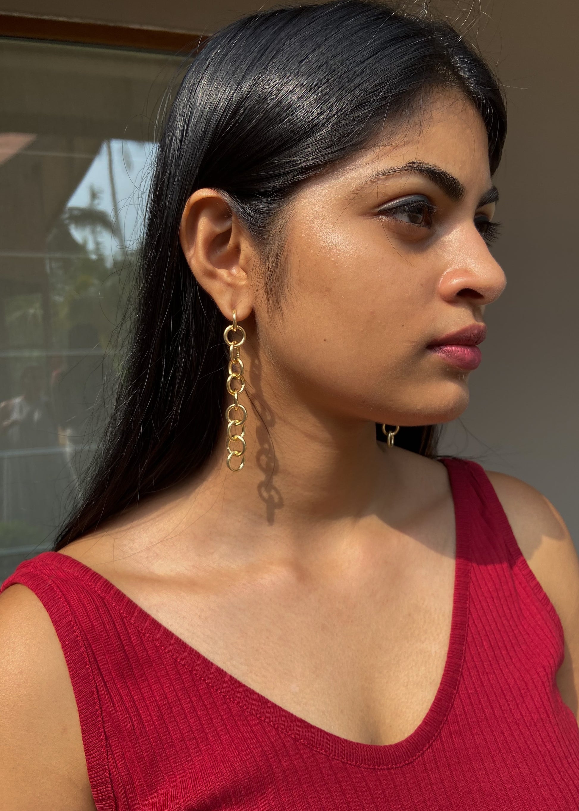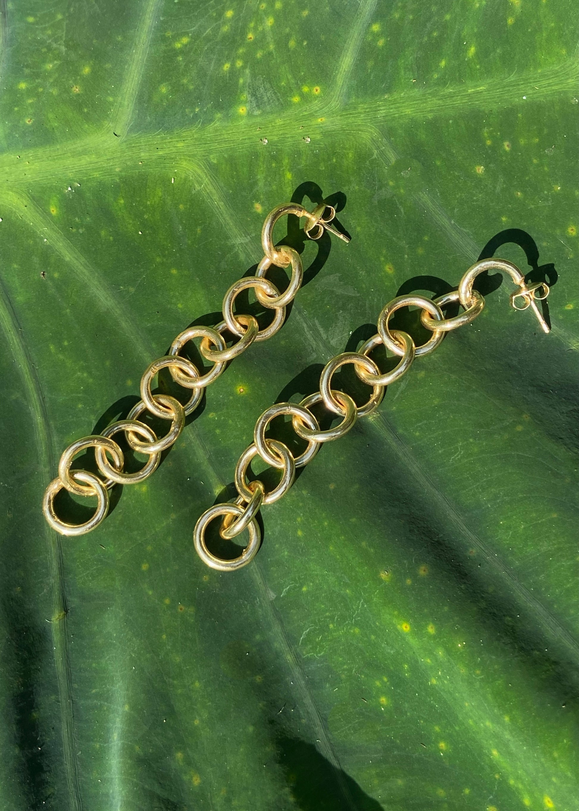 Modern classic link chains reimagined as long earrings with post and butterfly type clasp.